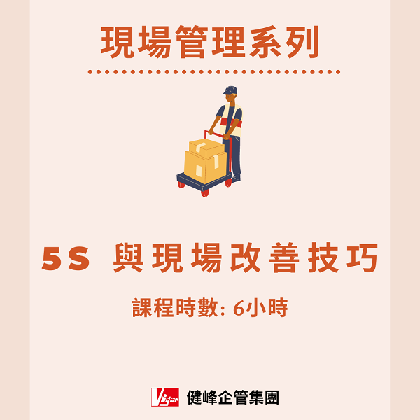 本課程以淺顯的語言闡釋5S的基礎概念,與您共同探討日前工廠的通病及浪費,透過本課程,您將由觀念的改變展開至行動的落實;並能具體掌握5S的推行技巧與改善手法;現場的效率提升、品質改善、成本降低也將水到渠成、指日可待。